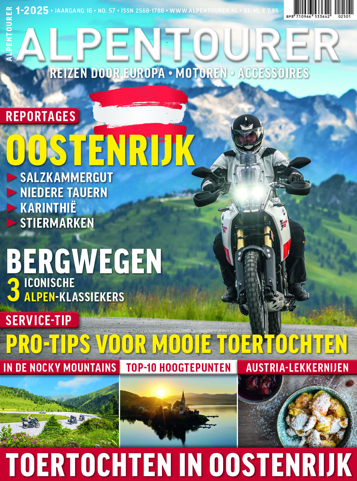 ALPENTOURER is als Nederlandstalig editie in Nederland en België in de betere tijdschriftenwinkel verkrijgbaar. Natuurlijk in dezelfde hoge kwaliteit als het Duitse voorbeeld. Met fascinerende tourreportages over de mooiste bestemmingen in Europa. Met nieuws en informatie over toermotoren, kleding en accessoires. Met events, hotels en nog veel meer tips voor het reizen op twee wielen. En met een speciale sectie op weekend en stopover tips rondom Nederland en België.