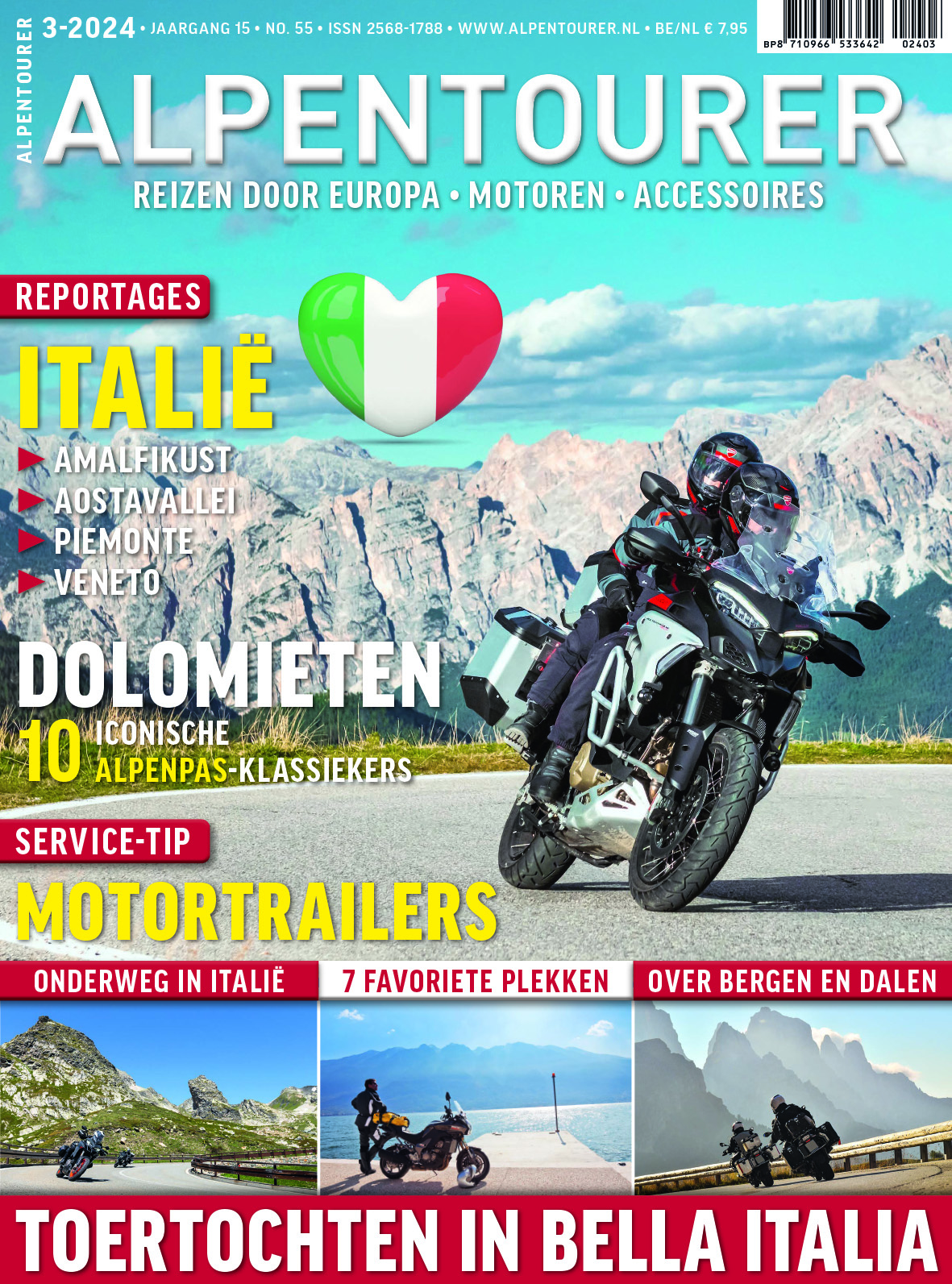 Reizen door Europa – Motoren – Accessoires – Reportages Italië – Dolomieten 10 iconische Alpenpas-klassiekers – Service-Tip Motortrailers – Toertochten in Bella Italia