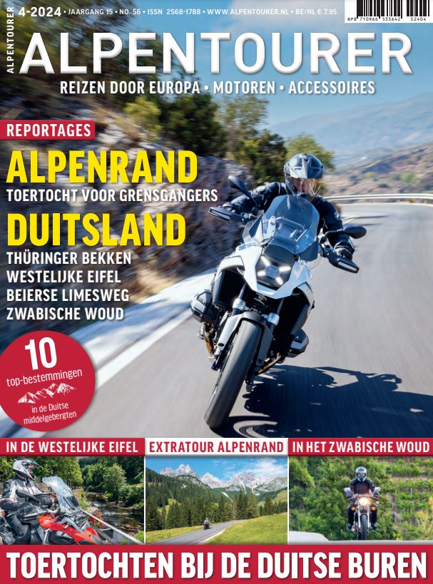ALPENTOURER is als Nederlandstalig editie in Nederland en België in de betere tijdschriftenwinkel verkrijgbaar. Natuurlijk in dezelfde hoge kwaliteit als het Duitse voorbeeld. Met fascinerende tourreportages over de mooiste bestemmingen in Europa. Met nieuws en informatie over toermotoren, kleding en accessoires. Met events, hotels en nog veel meer tips voor het reizen op twee wielen. En met een speciale sectie op weekend en stopover tips rondom Nederland en België.
