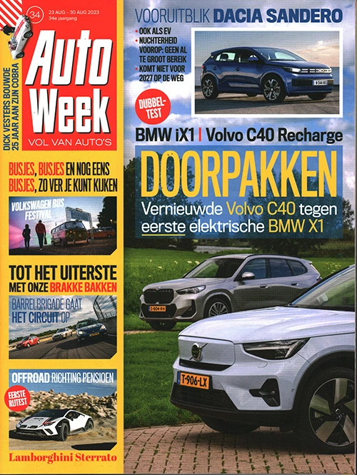 Vooruitblik Dacia Sandero: Ook als EV. Nuchterheid voorop: geen al te groot bereik. Komt niet voor 2027 op de weg – Dubbeltest: BMW iX1 & Volvo C40 Recharge – Doorpakken: Vernieuwde Volvo C40 tegen eerste elektrische BMW X1 – Dick Vesters bouwde 25 jaar aan zijn Cobra – Busjes, busjes en nog eens busjes, zo ver je kunt kijken: Volkswagen Bus Festival – Tot het uiterste met onze brakke bakken: Barrelbrigade gaat het circuit op – Offroad richting pensioen: Eerste rijtest Lamborghini Sterrato