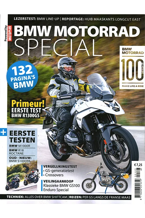 Primeur! Eerste test BMW R1300GS – Eerste testen: BMW M1000R – BMW R18 Roctane – Oud – Nieuw: BMW S1000RR – Vergelijkingstest : GS-generatietest – Crossovers – Veilingaankoop: Klassieke BMW GS100 Enduro Special –