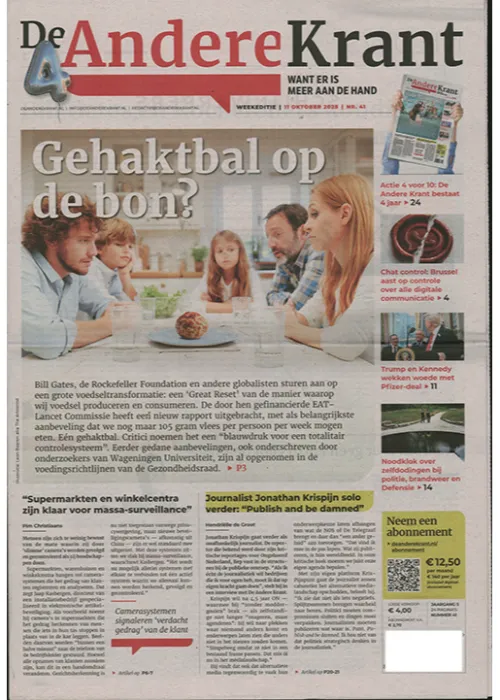 Gehaktbal op de bon? – Actie 4 voor 10: De Andere Krant bestaat 4 jaar – Chat control: Brussel aast op controle over alle digitale communicatie – Trump en Kennedy wekke woede met Pfizer-deal – Noodklok over zelfdodingen bij politie, brandweer en Defensie
