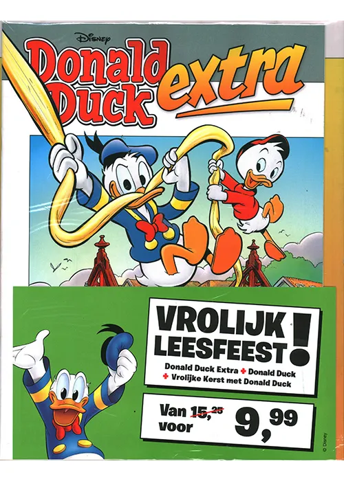 Donald Duck Extra: Een wekelijkse portie Donald Duck is voor een grote groep lezers niet genoeg. Zij willen éxtra avonturenen éxtra strips. Gelukkig kan dat, dankzij Donald Duck Extra! Dit maandblad draait inmiddels ook alweer een tijdje mee.