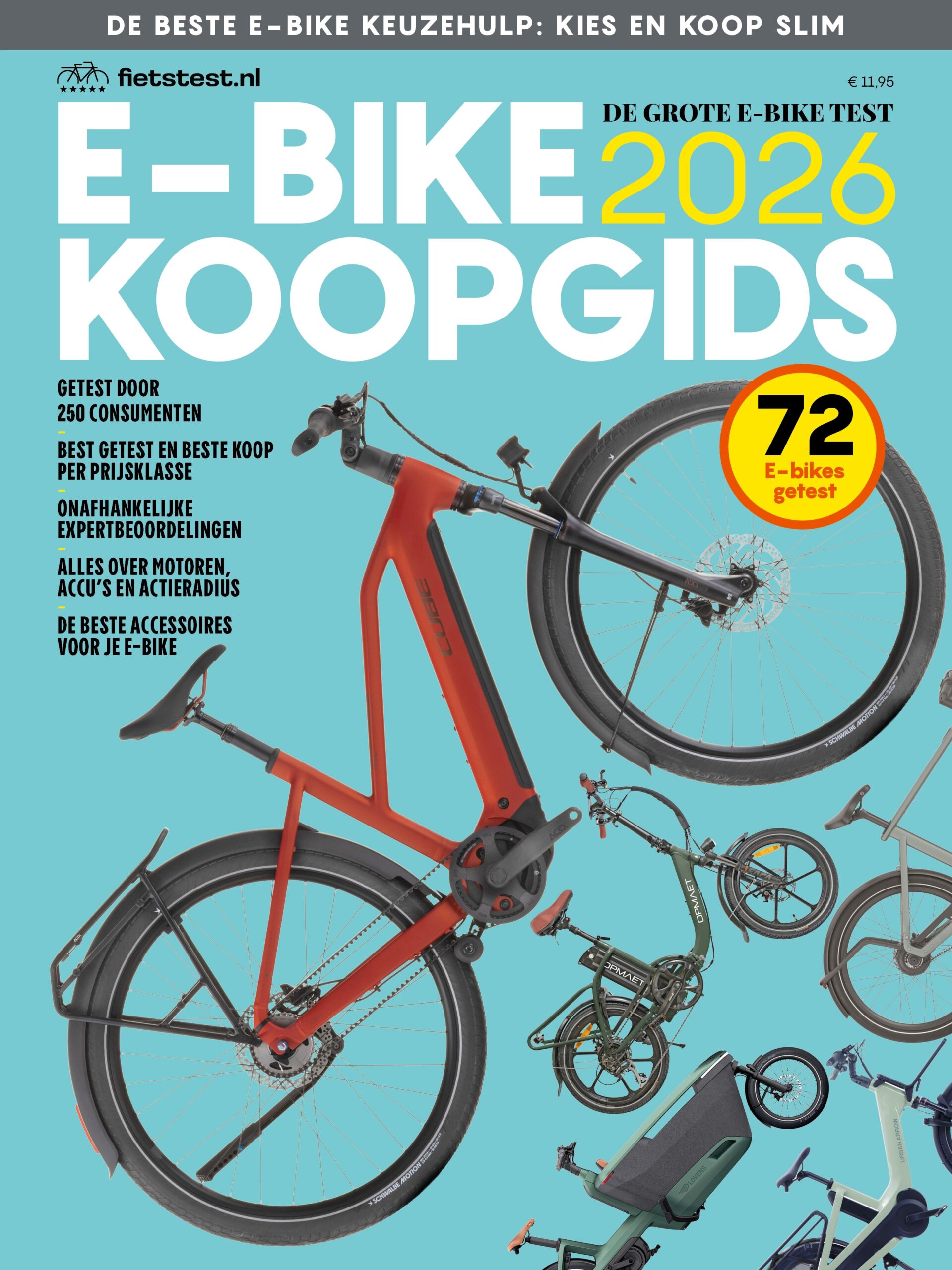 In de E-bike Koopgids 2026 worden 72 verschillende e-bikes uitgebreid getest die ieder met een uitgebreid testrapport gepresenteerd worden. Elektrische stadsfietsen, toerfietsen, speed pedelecs, urban bikes, bakfietsen, longtails en compactfietsen, de testen zijn uitgevoerd in verschillende categorieën. In elke categorie is ons Best Getest of Beste Koop keurmerk uitgereikt aan de winnende fietsen.