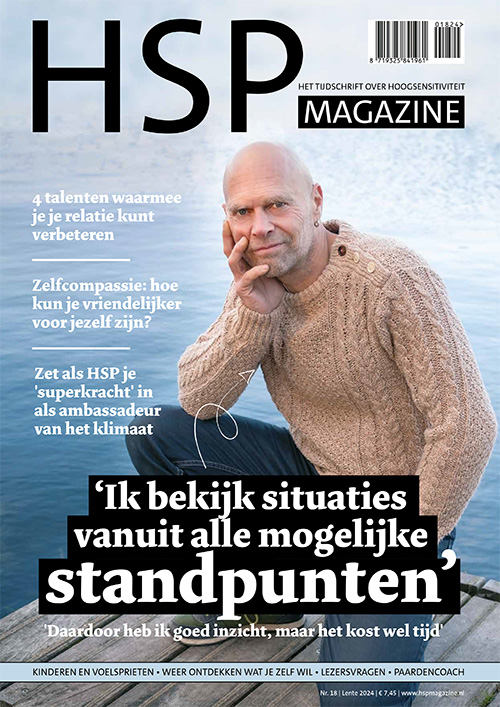 ‘Ik bekijk situaties vanuit alle mogelijke standpunten. Daardoor heb ik goed inzicht, maar het kost wel tijd’- 4 talenten waarmee je je relatie kunt verbeteren – Zelfcompassie: hoe kun je vriendelijker voor jezelf zijn? – Zet als HSP je ‘superkracht’ in als ambassadeur van het klimaat – Kinderen en voelsprieten – Weer ontdekken wat je zelf wil – Lezersvragen – Paardencoach