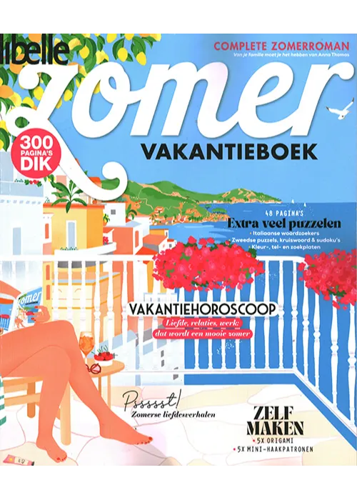 300 pagina’s dik – complete zomerroman: van je familie moet je het hebben van Anna Thomas – 48 pagina’s extra veel puzzelen – Vakantiehoroscoop – Pssst! Zomerse liefdesverhalen