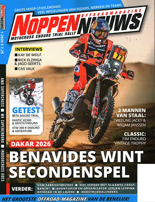Noppennieuws is hét grootste offroad-magazine van de Benelux. Iedere twee maanden lees je bij ons alles over de cross, endruo, trail en rally. Van testen en interviews tot achtergrondreportages. Allemaal geschreven door liefhebbers voor liefhebbers. In Noppennieuws vind je altijd de mooiste artikelen en foto’s over je favoriete offroad-hobby. Van spraakmakende interviews met toprijders, tot racereports van de MXGP, Enduro, Rally en Trail. Daarnaast hebben we iedere uitgave ook volop aandacht voor historie en onze helden van weleer.