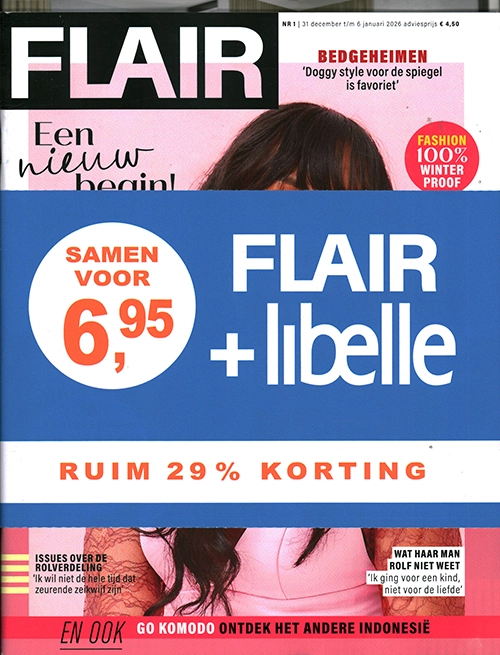 Flair: Met Flair zit je lekker in je vel! In dit magazine vind je betaalbare mode, makkelijke recepten en praktische tips voor in en rond het huis. Ook geniet je van de herkenbare columns, eerlijke interviews met bekende Nederlanders en leef je mee met de real life verhalen van lezeressen.