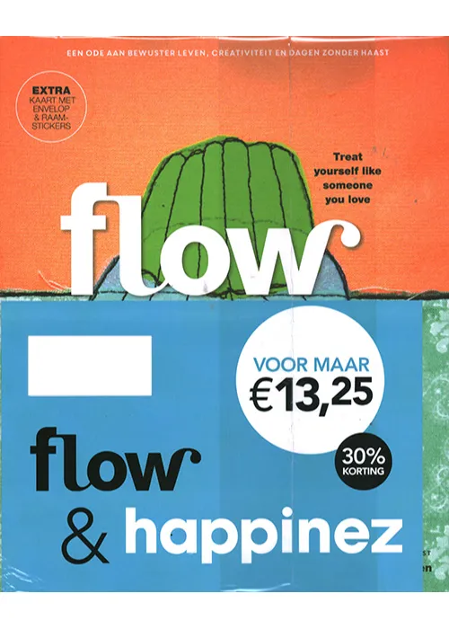 Flow: Flow is het tijdschrift voor iedereen die graag wat meer tijd voor zichzelf wil en op zoek is naar authenticiteit en rust. Het magazine Flow is voor een ieder die het leven net anders wil aanpakken en nuchtere en praktische oplossingen zoekt. Flow geeft inzichten & inspiratie over hoe dingen gedaan kunnen worden en om bepaalde keuzes te maken. Flow is een tijdschrift zonder haast, over geluk, mental health, een simpeler leven en creativiteit.