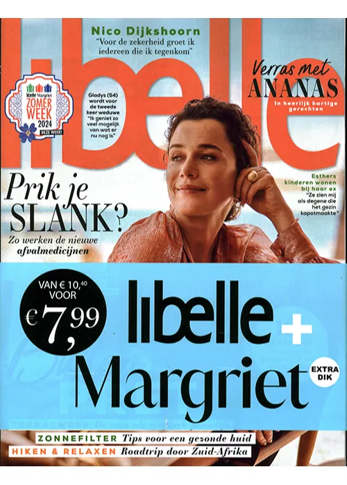 Libelle 23 2024: Nico Dijkshoorn “Voor de zekerheid groet ik iedereen die ik tegenkom” – Verrs met ananas in heerlijke hartige gerechten – Prik je slank? Zo werken de nieuwe afvalmedicijnen – Hetzelfde verdriet “We delen dingen die we zelfs onze mannen niet vertellen” – Buiten pret, terrasweer: de tuin als tropisch paradijs – Zonnefilter: Tips voor een gezonde huid