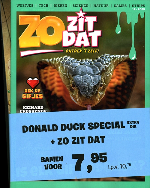 Donald Duck Special: In de dubbeldikke Donald Duck specials vind je nog meer spannende en grappige avonturen van Donald Duck, oom Dagobert, de neefjes, Katrien en andere bekende inwoners uit Duckstad. Elke Duck special staat in het teken van een ander thema. Deze specials verschijnen 8 keer per jaar. Zo Zit Dat: Zo Zit Dat is een Nederlands jeugdtijdschrift, bedoeld voor kinderen tussen de acht en dertien jaar. Het blad is gevuld met informatie over populaire, min of meer wetenschappelijke onderwerpen, die op een begrijpelijke manier worden uitgelegd. Zodat je op een jonge leeftijd leuk kan leren.