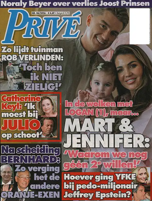 Zo lijft tuinman Rob Verlinden: ‘Toch ben ik niet zielig!’ – In de wolken met Logan (1), maar… Mart & Jennifer: ‘Waarom we nog géén 2e willen!’ – Hoever ging Yfke bij pedo-miljonair Jeffrey Epstein? – Na scheiding Bernhard: Zo verging het de andere oranje-exen