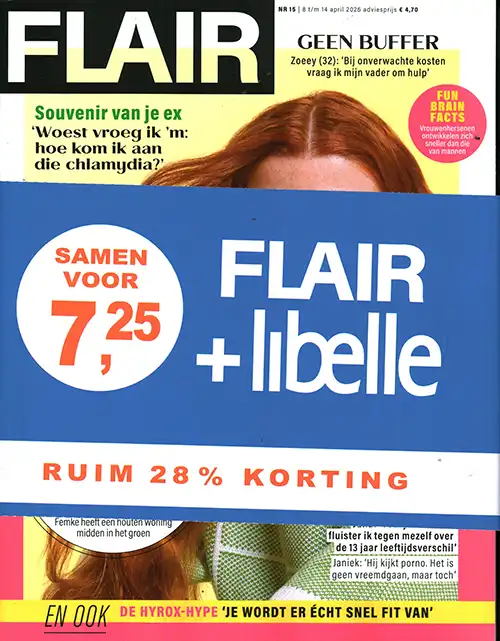 Flair: Met Flair zit je lekker in je vel! In dit magazine vind je betaalbare mode, makkelijke recepten en praktische tips voor in en rond het huis. Ook geniet je van de herkenbare columns, eerlijke interviews met bekende Nederlanders en leef je mee met de real life verhalen van lezeressen.