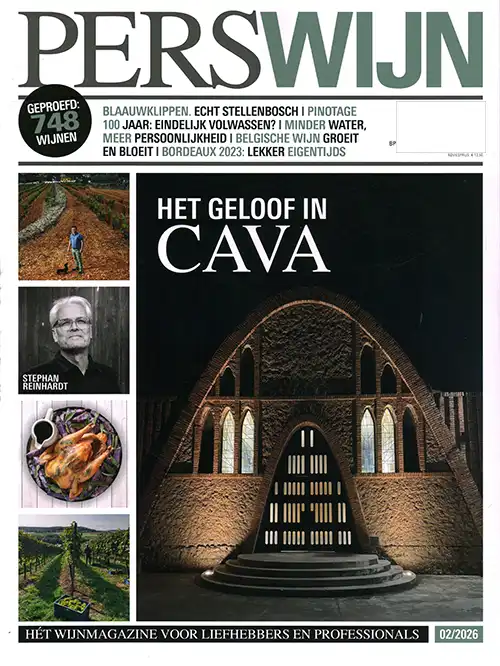 Het geloof Cava – Blaauwklippen – Echt stellenbosch – Pinotage 100 jaar: Eindelijk volwassen? – Minder water, meer persoonlijkheid – Belgische wijn groeit en bloeit – Bordeaux 2023: Lekker eigentijds