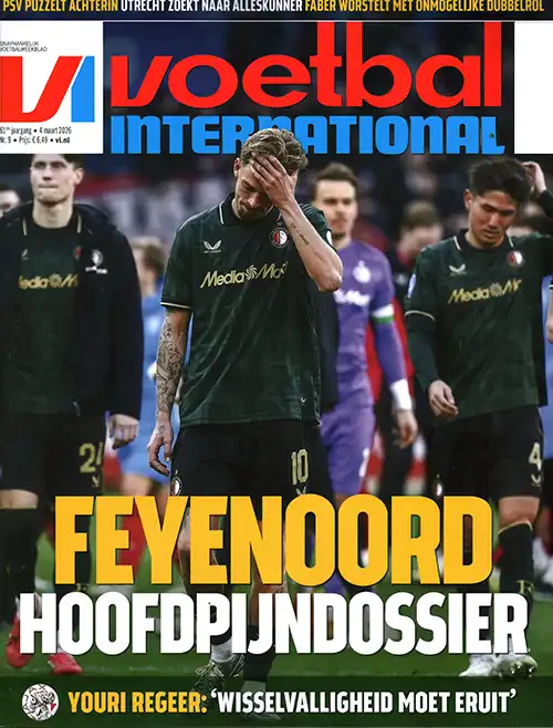 Het laatste voetbalnieuws lees je in Voetbal International. Het beste voetbalblad van Nederland bevat scherpe columns, achtergrondreportages en voor- en nabeschouwingen. Elke editie bevat een inhoudelijke benadering van het Nederlandse en internationale voetbalcompetities en geeft je prachtige fotografie en statistieken.