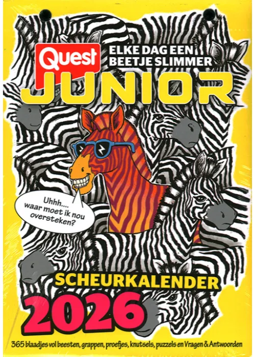 De Quest Junior scheurkalender is elke dag een feestje voor nieuwsgierige kinderen. Met grappige weetjes, slimme vragen en leuke puzzels leren ze spelenderwijs van alles over de wereld om hen heen.