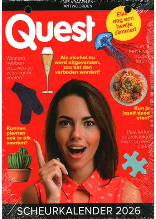 De Quest scheurkalender verrast je elke dag met leuke weetjes, grappige feiten en slimme inzichten. Van wetenschap tot alledaagse mysteries!