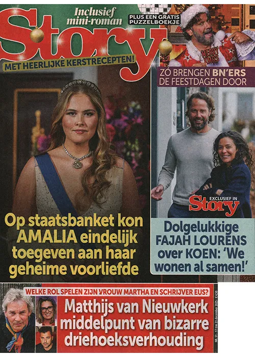 Story brengt iedere week het allerlaatste nieuws over ons koningshuis en Nederlandse en internationale showbizz. Met iedere week de meest onthullende verhalen en exclusieve foto´s. Daarnaast is er ook wekelijks een gratis puzzelbijlage!